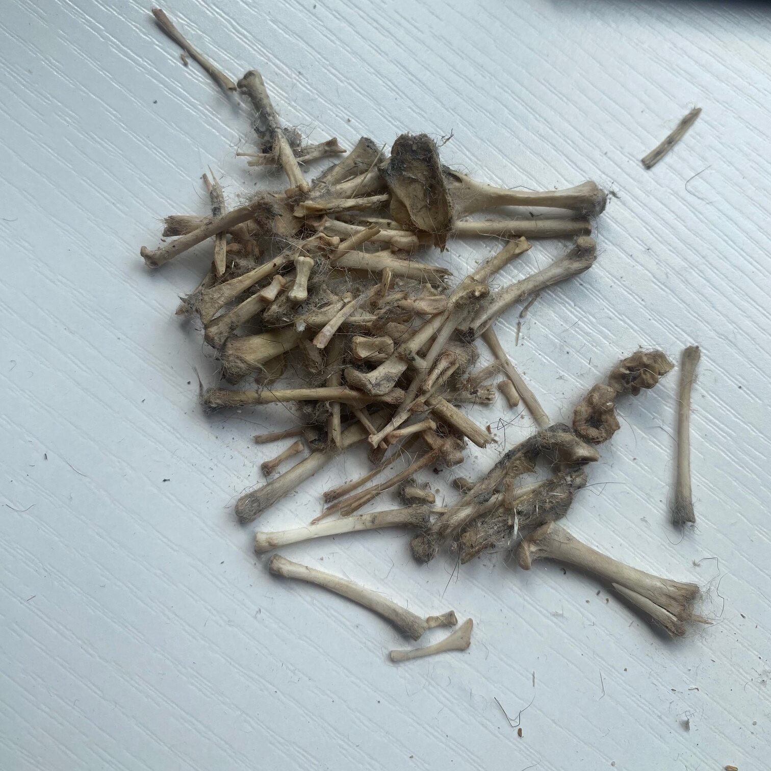 The owl pellet collection was dissected and lots of small rodent bones and teeth were uncovered.